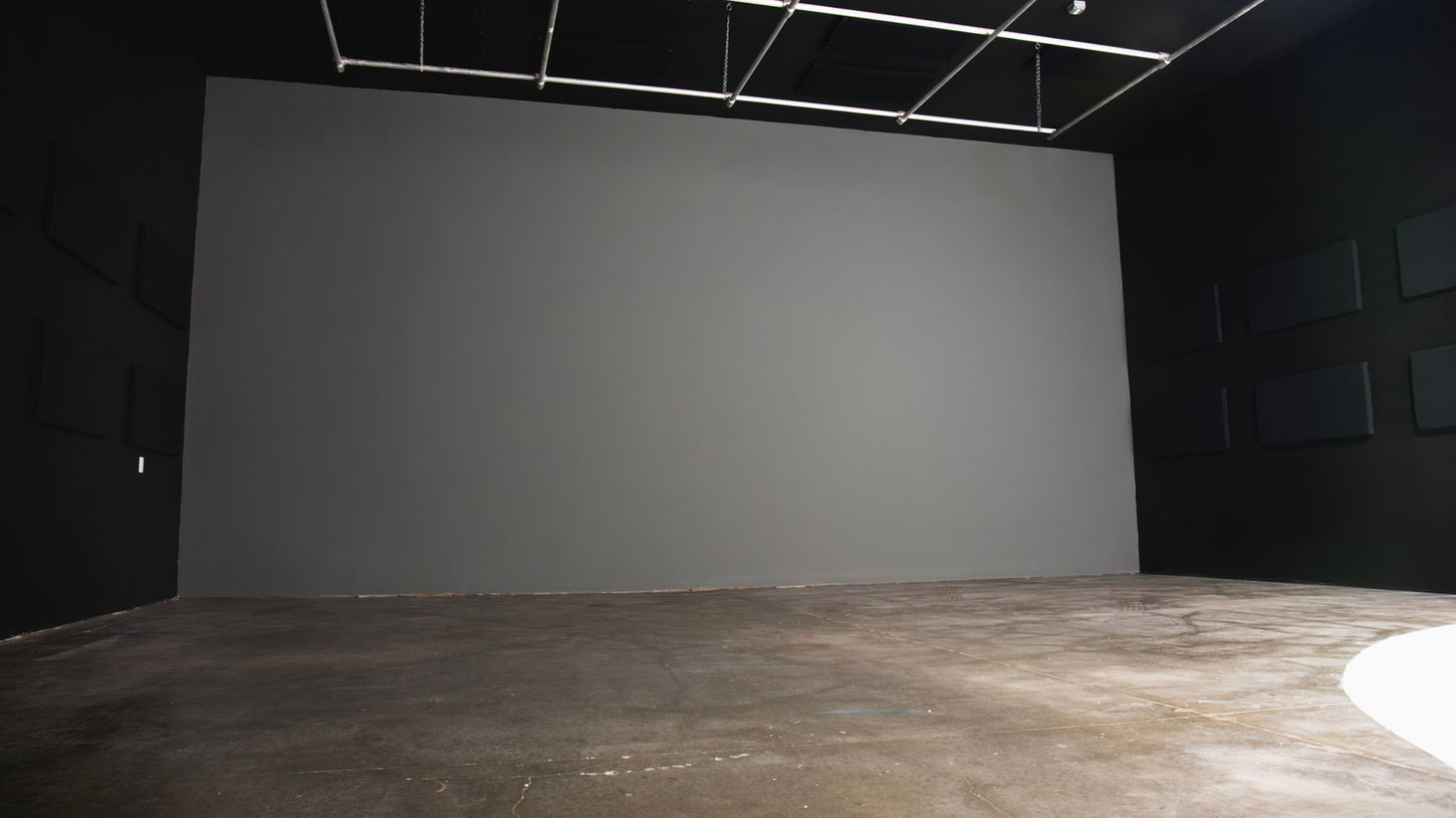 Studio Walls: 35 ft. x 14 ft. (Capture perfection against our expansive concrete grey flat wall, providing a minimalist backdrop for your creative endeavors)